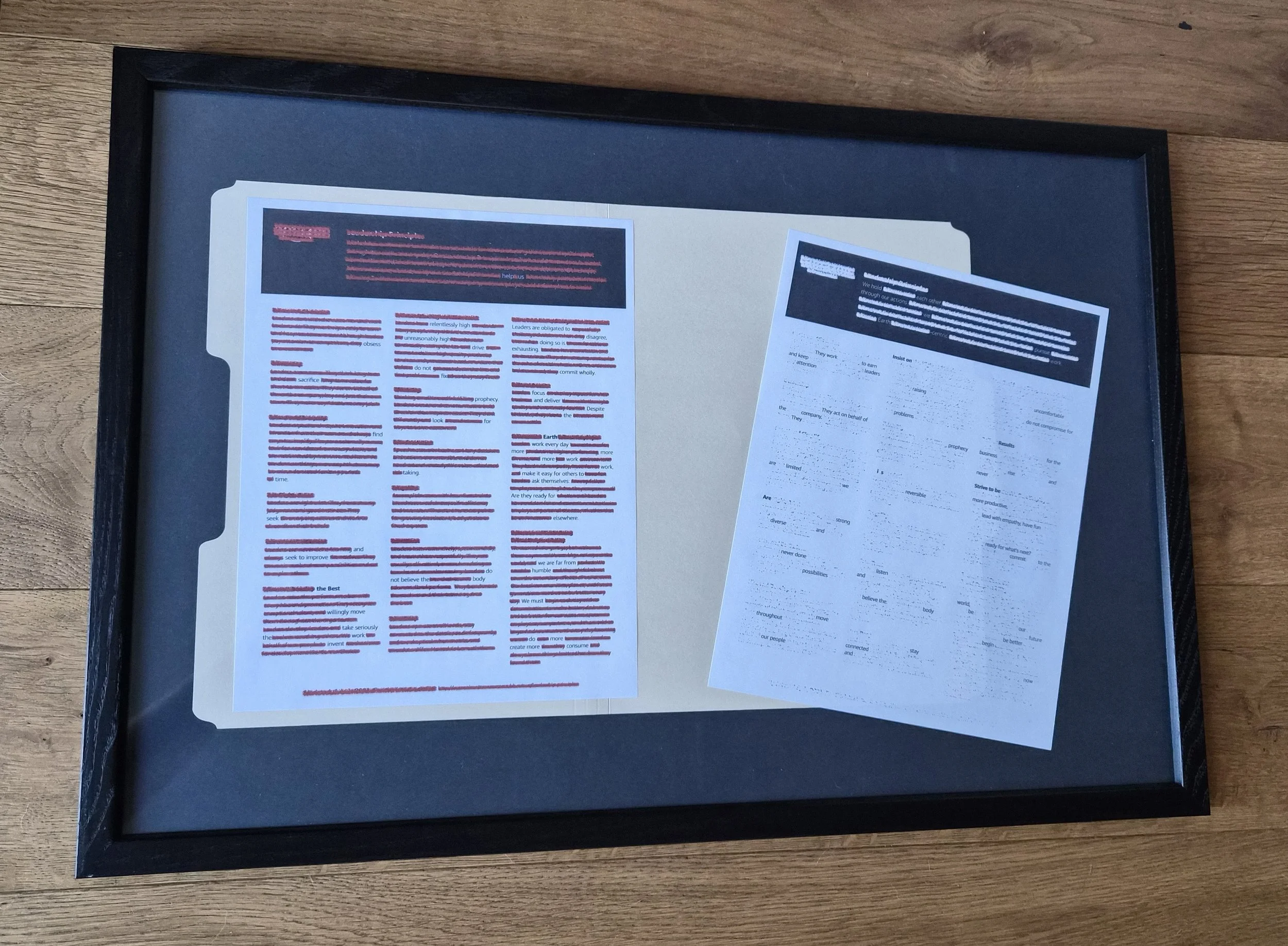 These pieces are more than making statements; they enable me to find my own truths and invite others to question what stories they can tell. I specifically lean into tech and corporate pieces and draw on my 13 years of experience in tech companies. While I primarily use paper or magazines, methods for erasure varies depending on the content (e.g. “blackout” using pen, post-its, lipstick, ??).